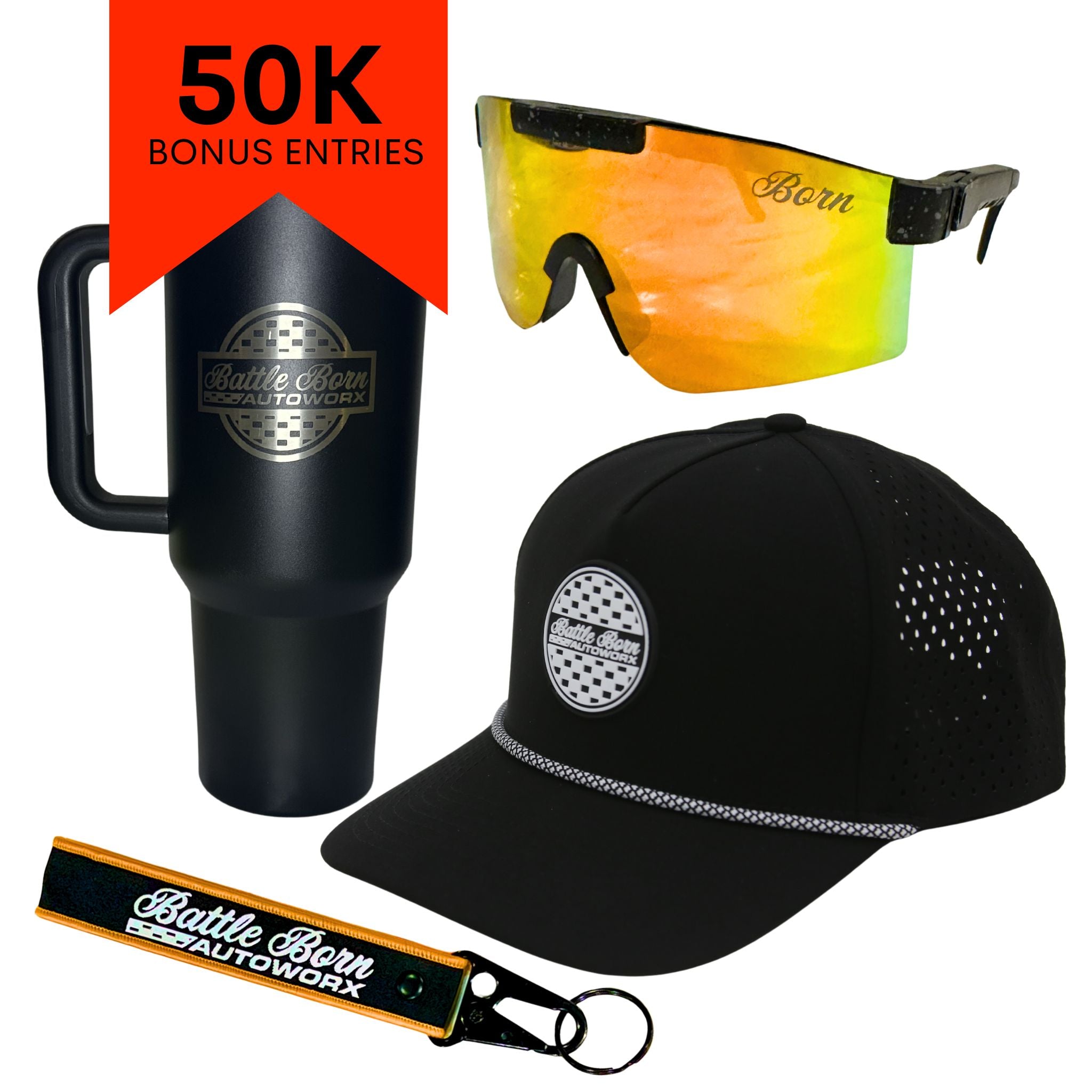 Every RALLY ESSENTIALS PACK comes with A MEGA 50,000 Bonus Entries toward winning our 1965 Wide Body Mustang — because your daily gear should come with life-changing upside.